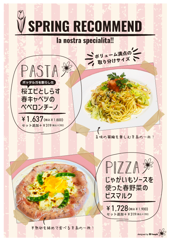 手軽に楽しめるイタリア料理をコンセプトとして居心地のいい楽しい空間を提供します。本格的なパスタとピッツァを楽しみながらおなかいっぱいになれるように、2~4人に最適なコースを各種ご用意しています。アラカルトで好きな料理を楽しむのもよし、みんなでわいわいコースを楽しむもよし。あなたのその日の気分によって楽しみ方を変えてみてはいかが?