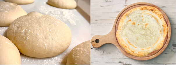 当社の冷凍ピザは、発酵済みの生地を使用しており、解凍後すぐに成形・焼成が可能です。